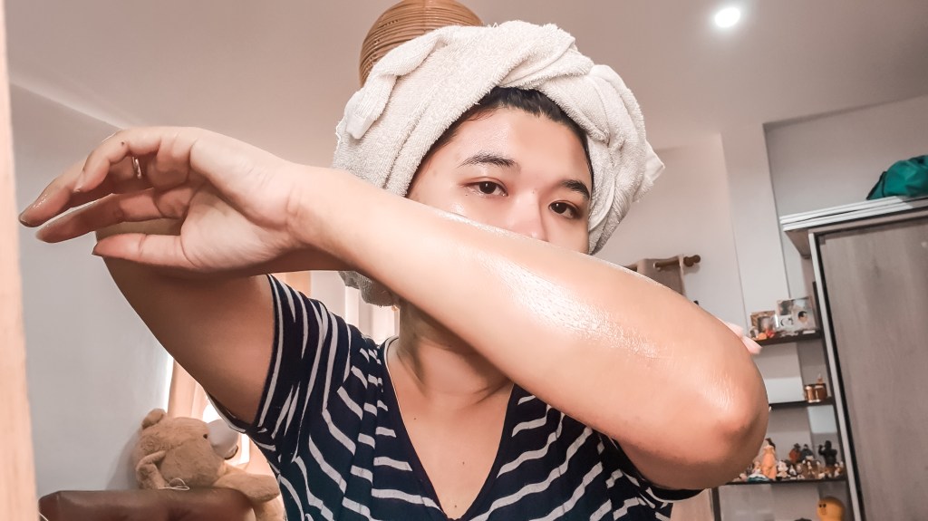 จากนั้นก็จะใช้เจลลูกเดือยแต้มบนหน้าและคอ ทาให้ทั่วเลยค่ะ จะรู้สึกว่าผิวดูชุ่มชื้นมากๆ หน้าเด้ง ผิวเด้ง สบายผิว ซึมไว ไม่เหนอะหนะค่ะ แล้วก็ใช้เจลลูกเดือยทาผิวทั้งแขน ทั้งขาได้ด้วยนะคะ เพราะรู้สึกทาแล้วสบายผิวดีค่ะ ผิวไม่แห้งด้วย ผิวใส เปล่งปลั่ง ชอบมากๆ