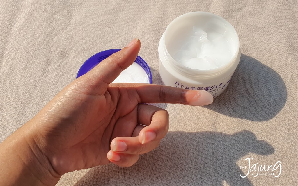เจลลูกเดือย Hatomugi Skin Conditioning Gel ลักษณะจะเป็นเนื้อเจลสีขุ่นขาวเหมือนน้ำลูกเดือย ดูเป็นธรรมชาติ เนื้อเจลเบา ไม่เหนอะหนะ