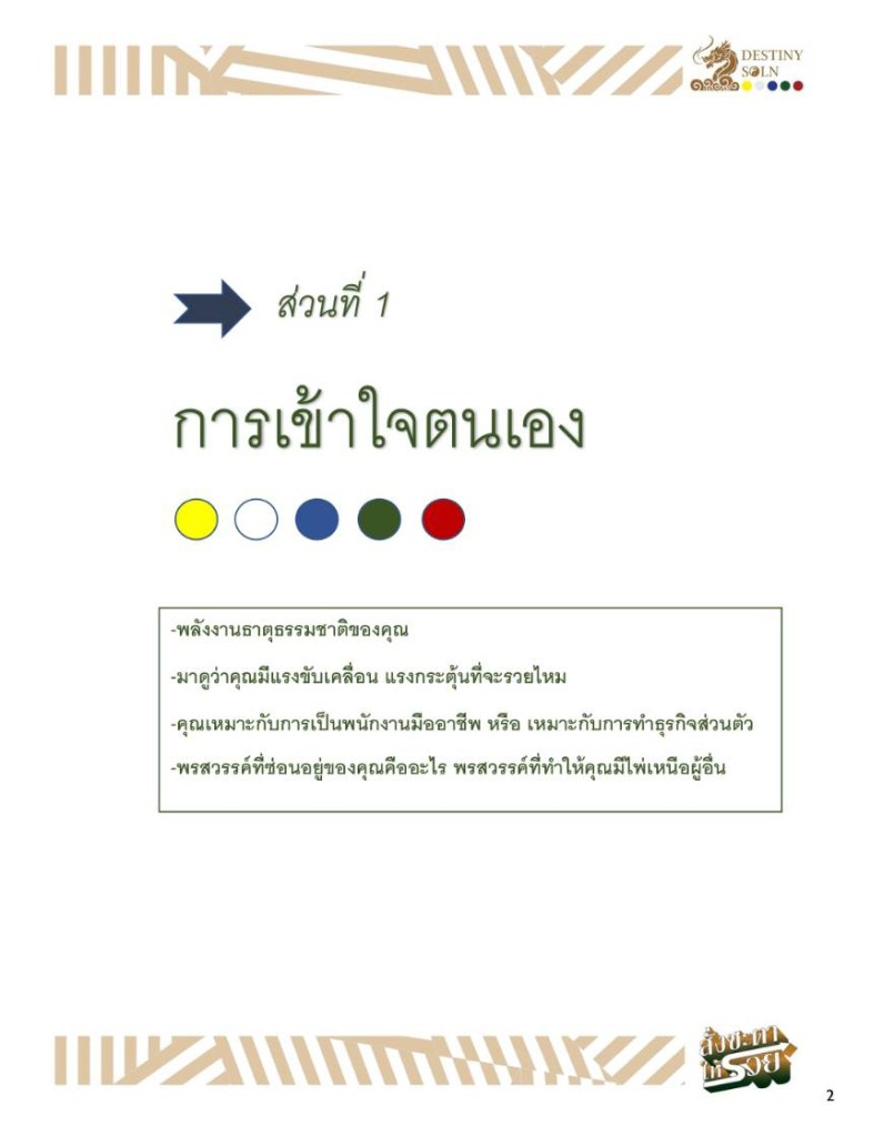 คู่มือนี้จะไขรหัสชีวิตผ่านวันเดือนปีเกิด ทำให้รู้จักตัวตนของตัวเองมากขึ้น รู้ถึงสิ่งที่เหมาะสมกับดวงชะตา ในเรื่องของการงานอาชีพ และธุรกิจประเภทใดที่ควรทำ ทำให้เราสามารถพัฒนาตัวเองให้สอดคล้องกับพรสวรค์ได้ถูกจุด ไม่ต้องลองผิดลองถูก รู้จังหวะและโอกาสในแต่ละช่วงของชีวิต