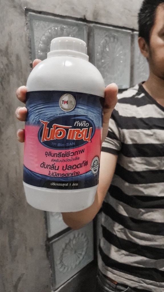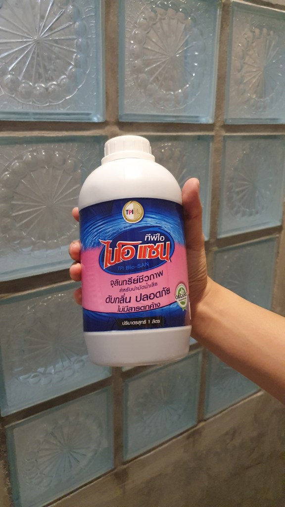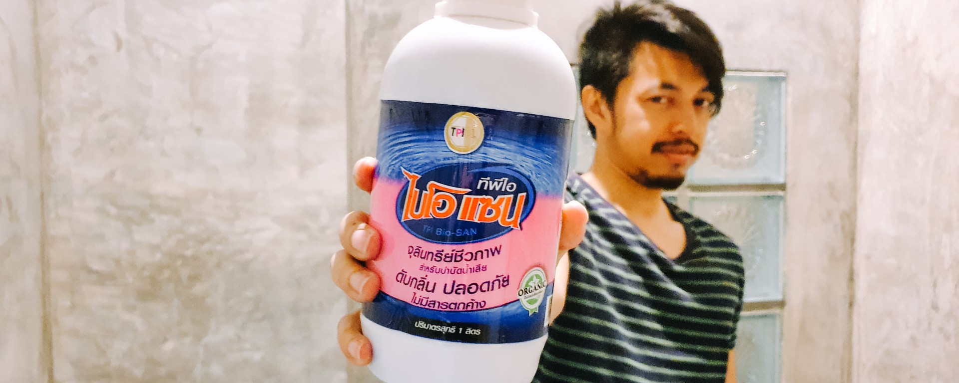 สำหรับใครที่เจอปัญหาแบบเดียวกันก็ลองหาซื้อมาใช้ดูนะคะ TPI Bio-San ขนาด 1 ลิตร ราคา 110 บาท รับรองว่ากำจัดกลิ่นไม่พึงประสงค์ของห้องน้ำหมดไปแน่นอน