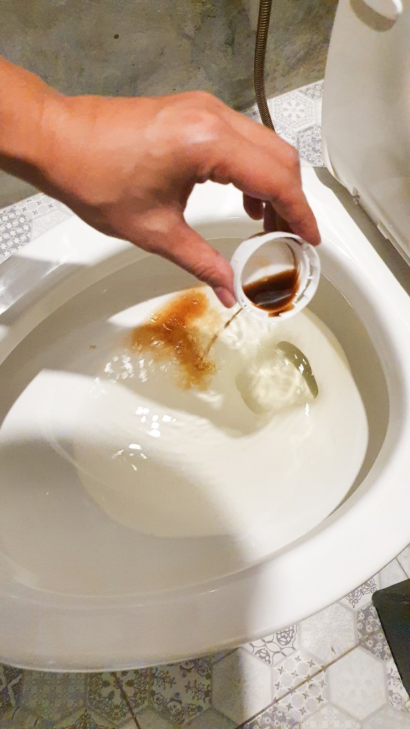 1. เท TPI Bio SAN ลงในโถส้วมหรือท่อน้ำครั้งละ 20 ซีซี หรือ 2-3 ซ้อนโต้ะ