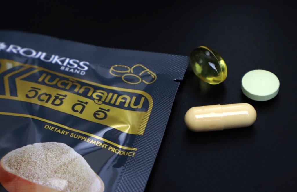 1. เม็ดแคปซูล (สีเหลือง) – จะเป็นเบต้ากลูแคน ช่วยกระตุ้นระบบภูมิคุ้มกันของร่างกาย ทำให้เซลล์ภูมิคุ้มกันสามารถที่จะดักจับ หรือ ทำลายเชื้อโรค / สิ่งแปลกปลอมต่างๆ ให้ออกไปจากร่างกายได้อย่างมีประสิทธิภาพ และยังเข้าจัดการกับเซลล์ที่กำลังจะเติบโตเป็นเซลล์มะเร็งในอนาคตได้อีกด้วย อาหารเสริมโรจูคิสตัวนี้จะเป็นเบต้ากลูแคนที่มาจากยีสต์ ซึ่งเป็นเบต้ากลูแคนที่เสริมสร้างภูมิคุ้มกันได้ดีที่สุด