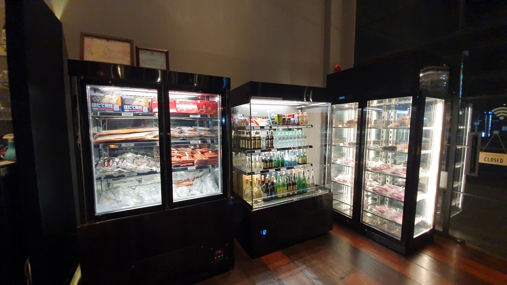 ทางร้านขายวัตถุดิบจากญี่ปุ่นสำหรับทำอาหารจำหน่ายด้วยนะคะ มีทั้งหอยเชลล์ แซลมอน ปลาไหล หรือจะเป็นสเต็ก ซึ่งทางร้านมีจัดเชท Steak DIY มีเนื้อ มีขนมปัง และเครื่องเคียง แต่เราไม่ต้องห่วงว่าซื้อกลับบ้านไปแล้วจะอร่อยเหมือนทานที่ร้านไหม เพราะว่าเชฟจะซูวีส์เนื้อให้ พอเรากลับบ้านมาก็แค่เอาเสต็กไปย่างด้านละ 3 นาที เราก็จะได้เสต็กระดับ Medium Rare เหมือนทานที่ร้านเลยค่ะ