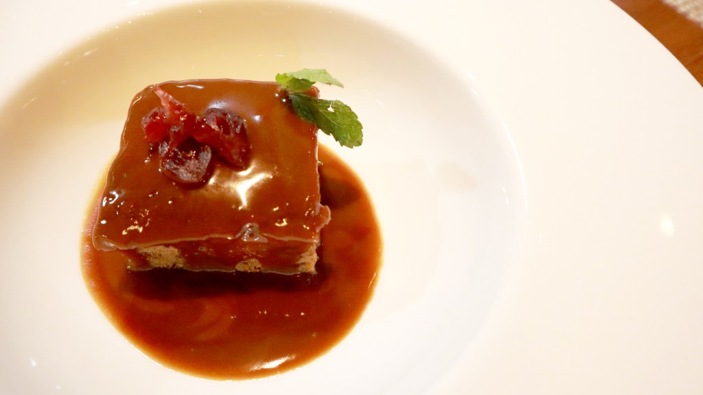 เมนูของหวานตบท้ายคือ Sticky Cranberry Pudding with Toffee Sauce เนื้อเค้กที่เป็นเนื้อพุดดิ้ง ราดด้วยซอสท็อฟฟี่คาราเมลวางด้านบนเป็นแครนเบอร์รี่แห้ง รสชาติคือดีๆๆๆๆ ละมุน ไม่หวานมาก