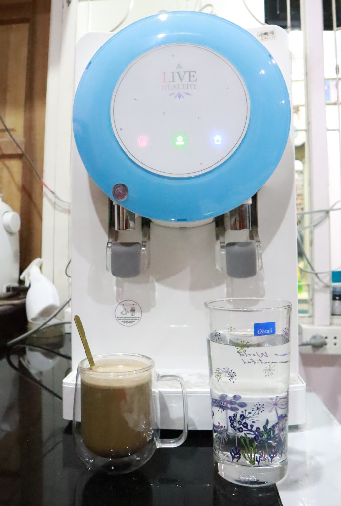โดยปกติแล้วเราจะซื้อน้ำดื่มเป็นขวดพลาสติกจากซุปเปอร์มาเก็ต จะซื้อที่ละหลายๆ แพคเพื่อตุนไว้ ซึ่งเมื่อคำนวนแล้วต่อเดือนก็ใช้จ่ายค่าน้ำดื่มไปไม่ใช่น้อย เราเลยลองใช้เครื่องกรองน้ำอัลคาไลน์ ของ Live Healthy รุ่น Hot & Cold เป็นเครื่องกรองน้ำตั้งโต๊ะ ซึ่งใช้พื้นที่ไม่เยอะเหมาะกับที่พักพื้นที่ใช้สอยไม่เยอะแบบเรามากๆ ค่ะ