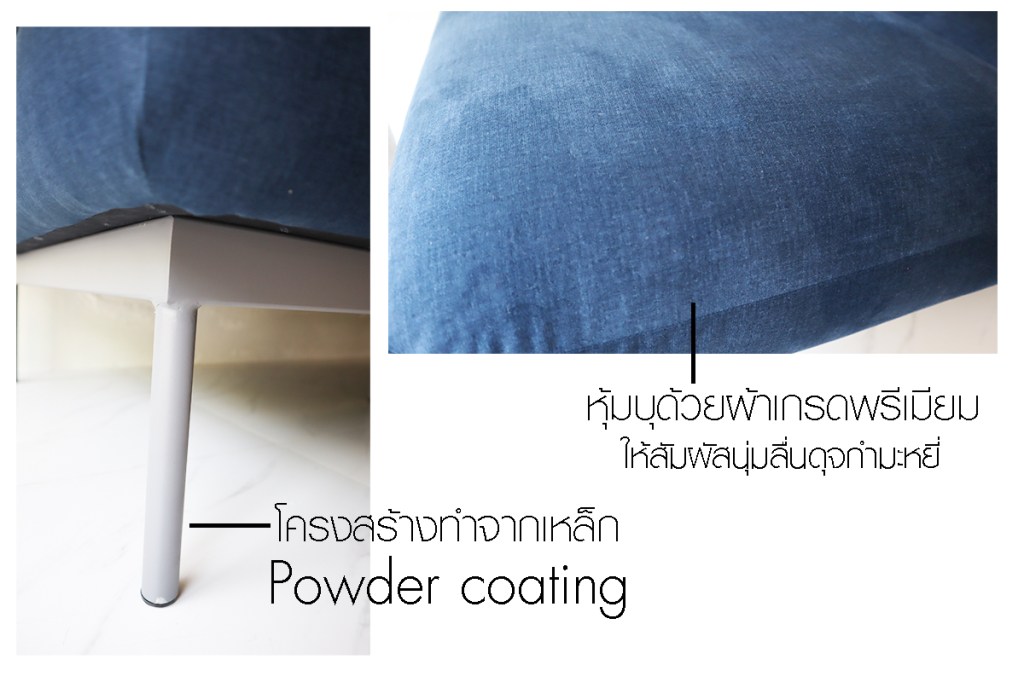 โครงสร้างของโซฟาทำจากเหล็ก Powder coating มีความแข็งแรง รับน้ำหนักได้ดี ตัวเบาะโซฟาหุ้มบุด้วยผ้าเกรดพรีเมียม นุ่มลื่นสัมผัสเหมือนกำมะหยี่ แถมไม่ติดขนสัตว์ ถ้าใครเลี้ยงน้องหมา น้องแมว ตัวนี้เหมาะมากๆ ไม่เป็นรอยขีดข่วน และยังทำความสะอาดได้ง่ายอีกด้วย